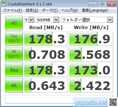 使い古しの5台のハードディスクを突っ込んでDroboの使い始めましたが、それぞれのハードディスクの転送速度よりも明らかに遅いです。参考に、挿入したHDDの読み書きテストの結果を添付しています