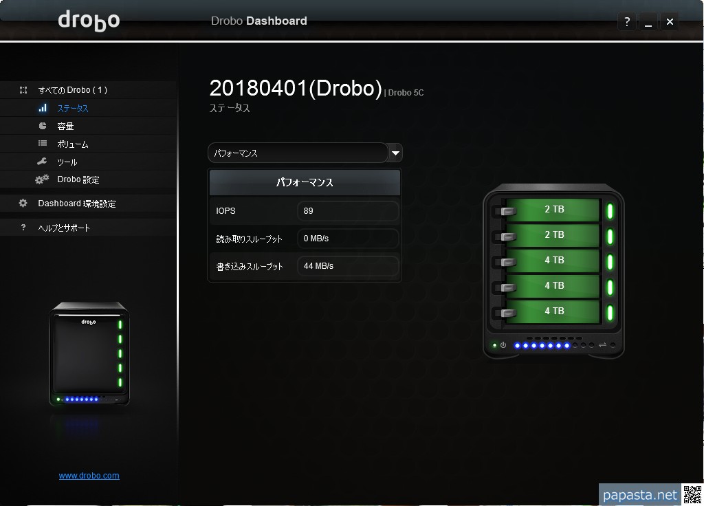 ディスクを差し込むだけで、すぐにHDDの利用が開始されるなど便利なDroboですが、転送速度はそこそこ