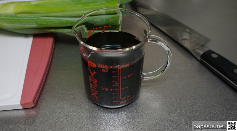 | しょう油 | 大さじ3杯(45ml) (キッコーマン 特選丸大豆しょうゆ) |