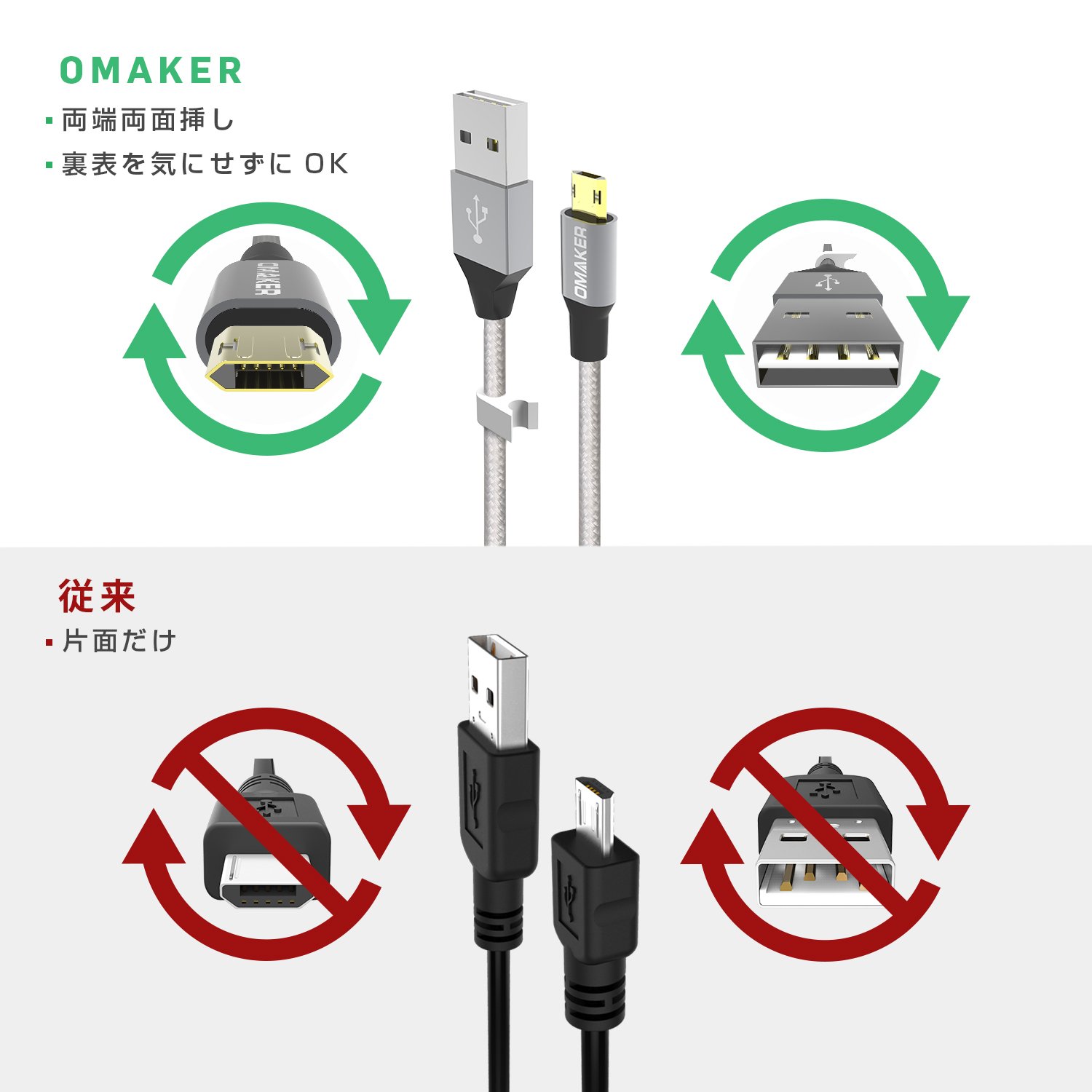 上下を意識せずに差し込みできるのはストレスがなくていいです。特に寝室などの暗がりでの接続作業では、端子の向きを確認しないですむのでいいです。また、ケーブルも丈夫です。使用開始から1年以上経過しますが、まだ断線していません