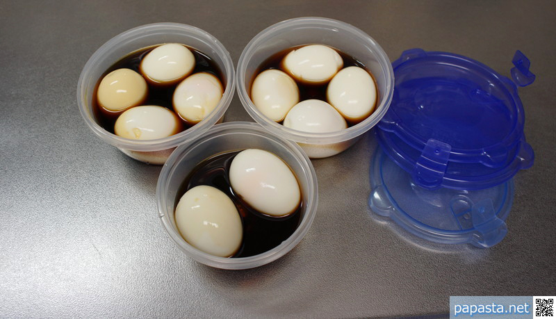 突起部分は、ご飯をムラなく温めるだけでなく、煮卵を作るときにも便利です。煮卵のつけダレが、容器の突起部分の分だけ少なく済むので、調味料の節約です。小サイズならば3つ、大サイズならば4つの卵が入ります。なので、卵10個パックを買ってきたときには、小サイズ2つと、大サイズ1つに分けて卵を入れて、煮卵を作ります