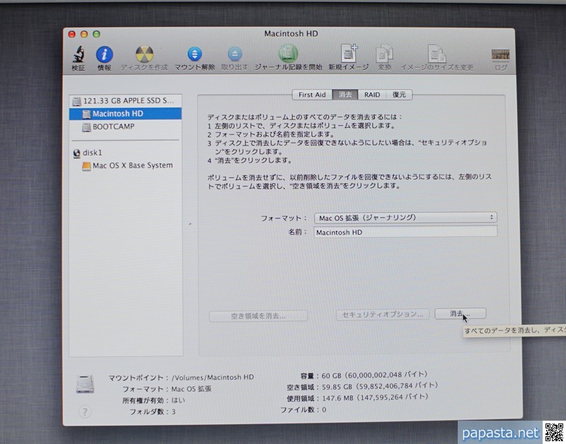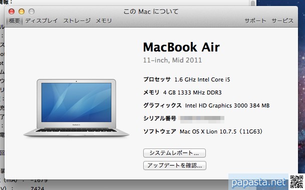 MacBook Air(MacBook Air (11-inch, Mid 2011))をリストア(再セットアップ)しました。相当古いマシンなのですが、初めて買ったマックということもあって、今でも便利に使っております。ベンチマークの結果も今見てもそれほど悪くなく、愛着があるゆえ、売りに出したり、捨てたりできないでいます。