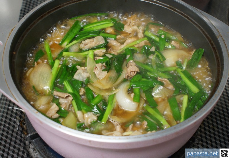 ニラとの相性も良し。疲れたときには、ニラのざく切りを最後く加えるのもいいです。ニラには、豊富な栄養素が含まれています。具体的には、ビタミンB1(疲労を回復)、B2(エネルギー代謝を促進)、鉄分(貧血予防)、カリウム(むくみを解消)、カルシウム(いらいら防止)、マグネシウム(血液の循環を円滑に)などが含まれているそう。ニラは免疫力を高めるといいますが、こういうことだったんですね