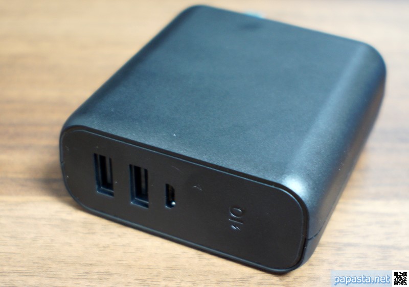 2つのUSB出力端子は、ほどほどの数で便利です。新幹線で移動することが多いのですが、こんなときは、タブレット(読書用)、ラップトップパソコン(仕事用)それからスマホを持ち出します。新幹線には、ACコンセントが窓際に設置されていることが多いので、充電機能でラップトップパソコンとスマホを充電しています