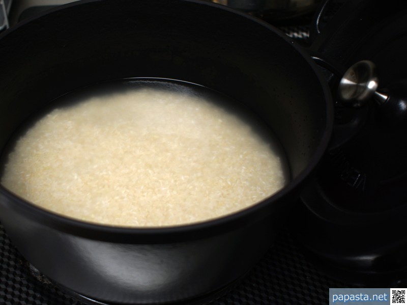 炊きあがったご飯のこびりつきは、昆布を入れて炊き上げると軽減されるように感じます。一晩冷蔵庫で戻した昆布を戻し汁ごと炊き上げます