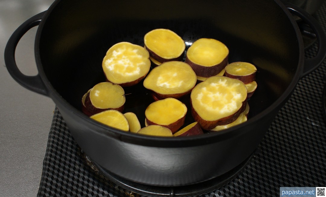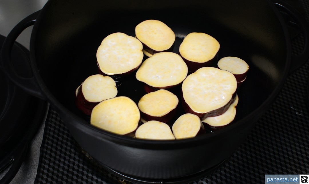 バーミキュラの遠赤外線効果を活用すると焼いも風のねっとり甘いふかし芋が簡単に作れます